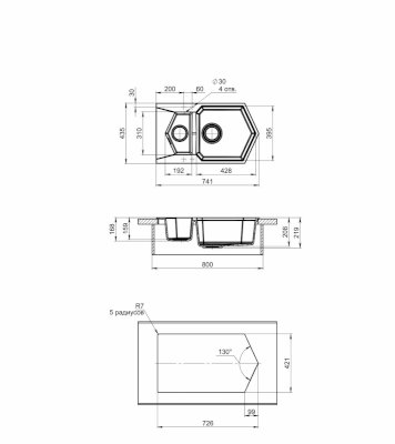 Ширина дополнительной чаши: 310 мм